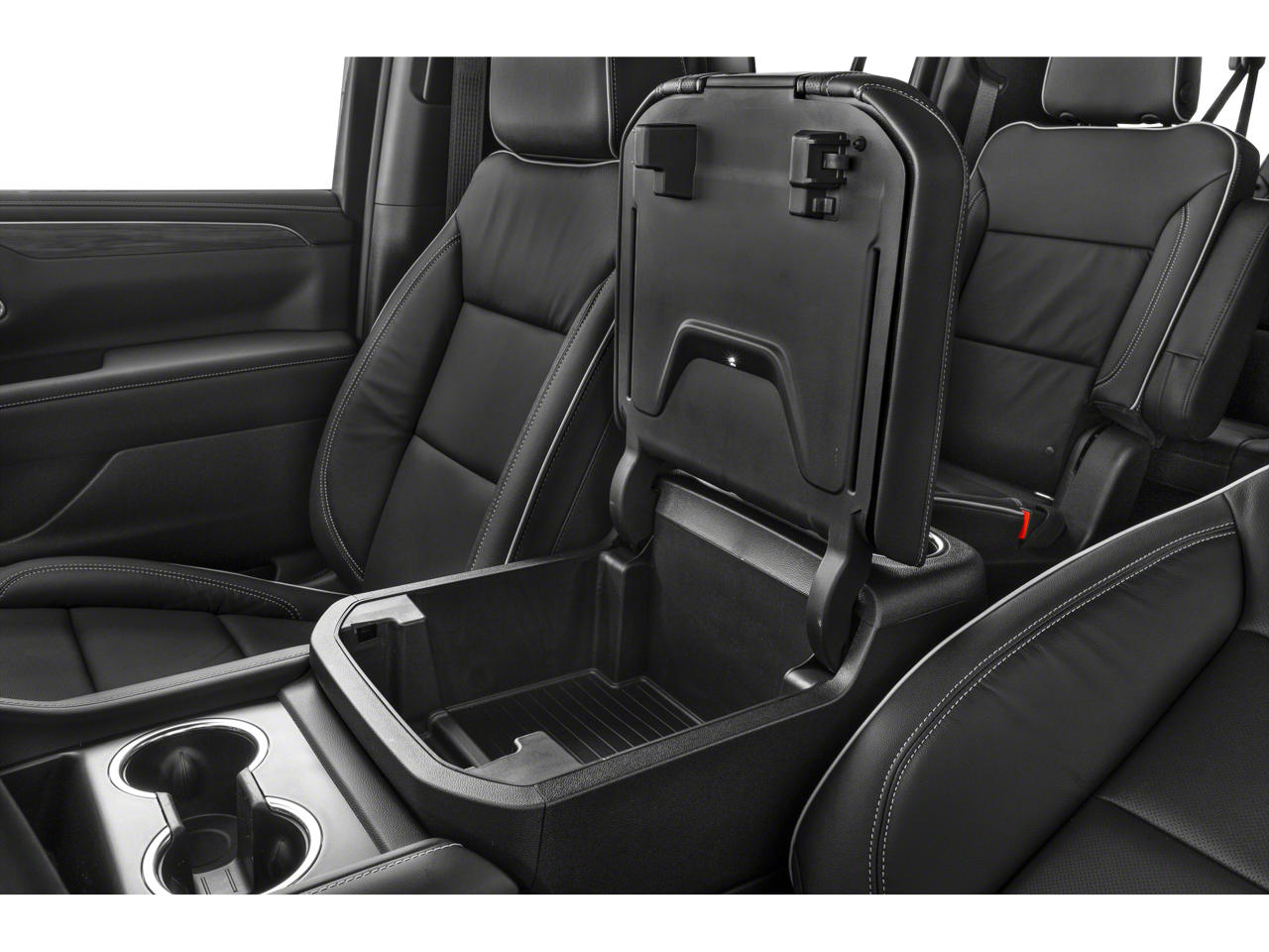 - Console, floor with storage area, cup holders
